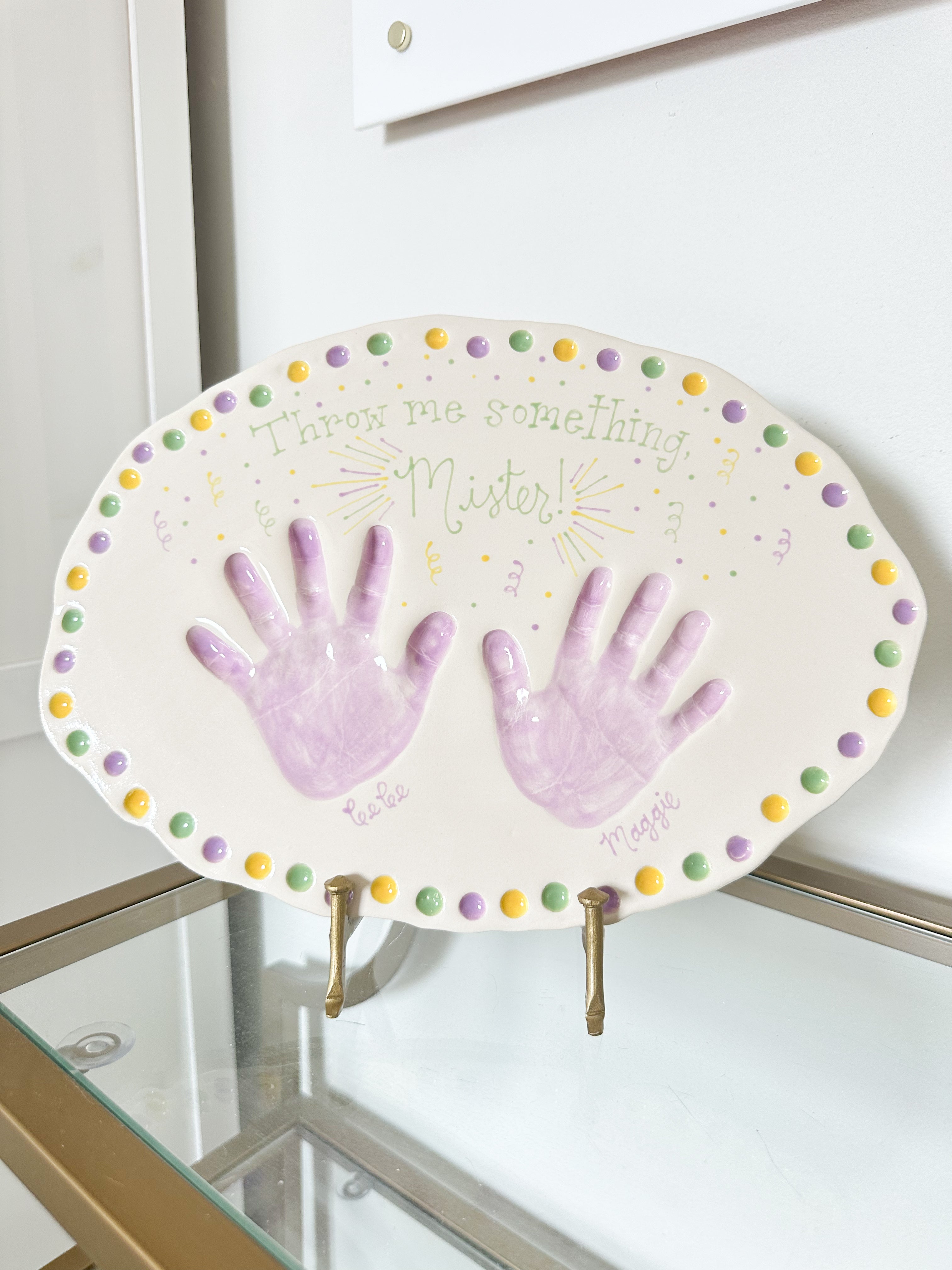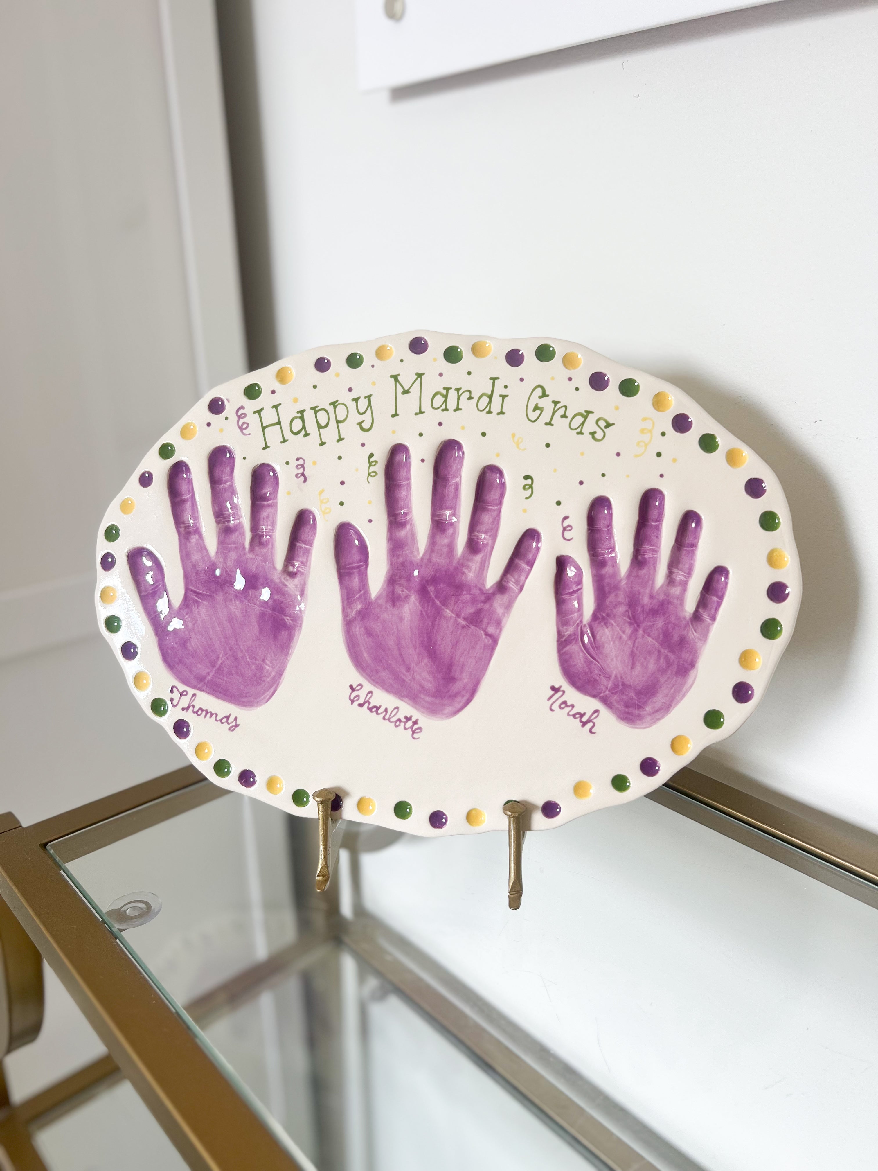In Louisiana we love to Laissez le bons temps rouler--- let the good times roll! Our Mardi Gras plates are perfect for displaying during the most wonderful time of the year carnival season!