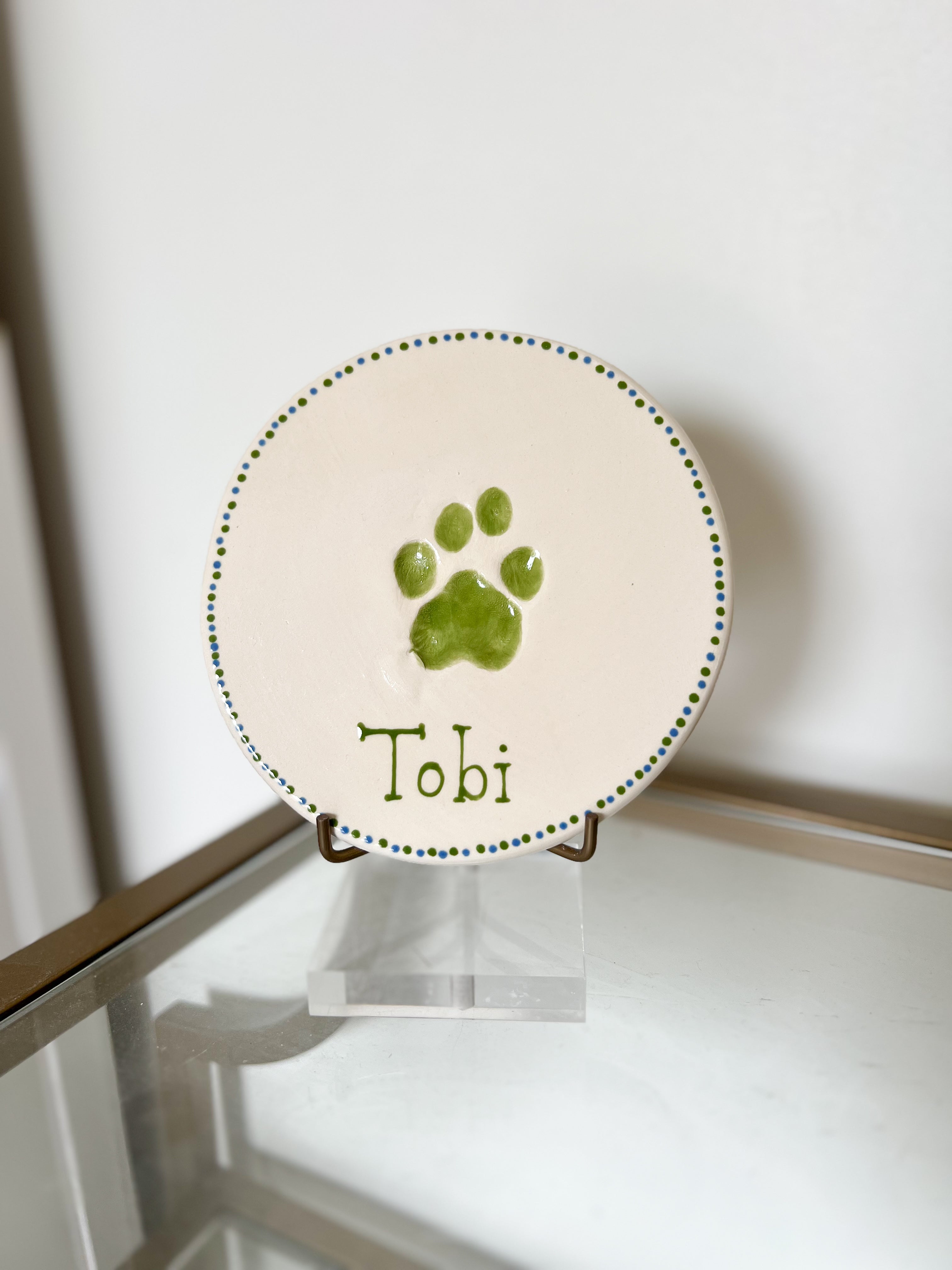Capture your fur baby's paw prints in this classic plate. It's a great way to remember and celebrate your furry loved ones.